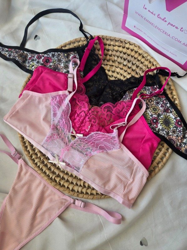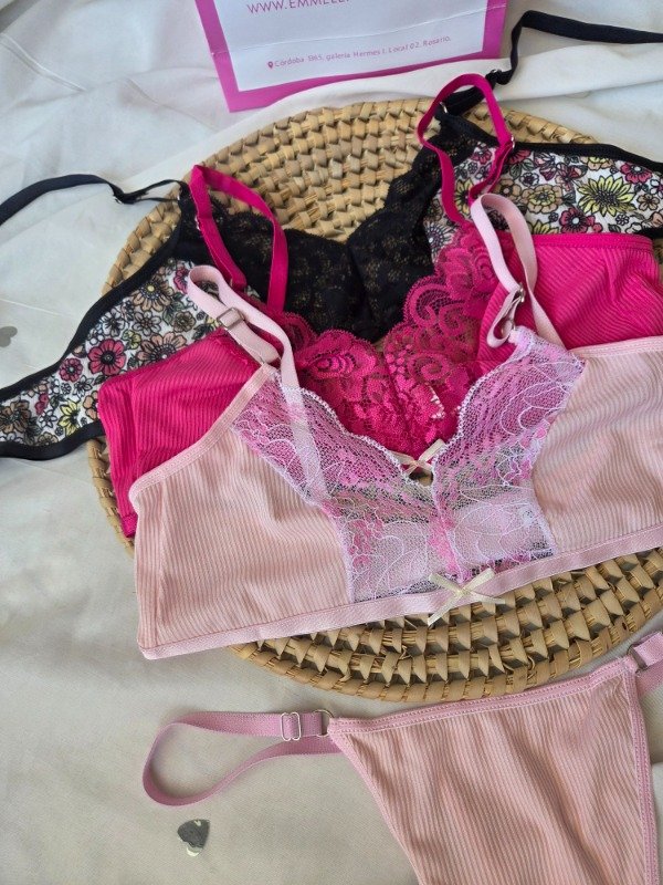 Corpiño sin armar, espalda con broche 2 posiciones. Viene con colaless regulable.