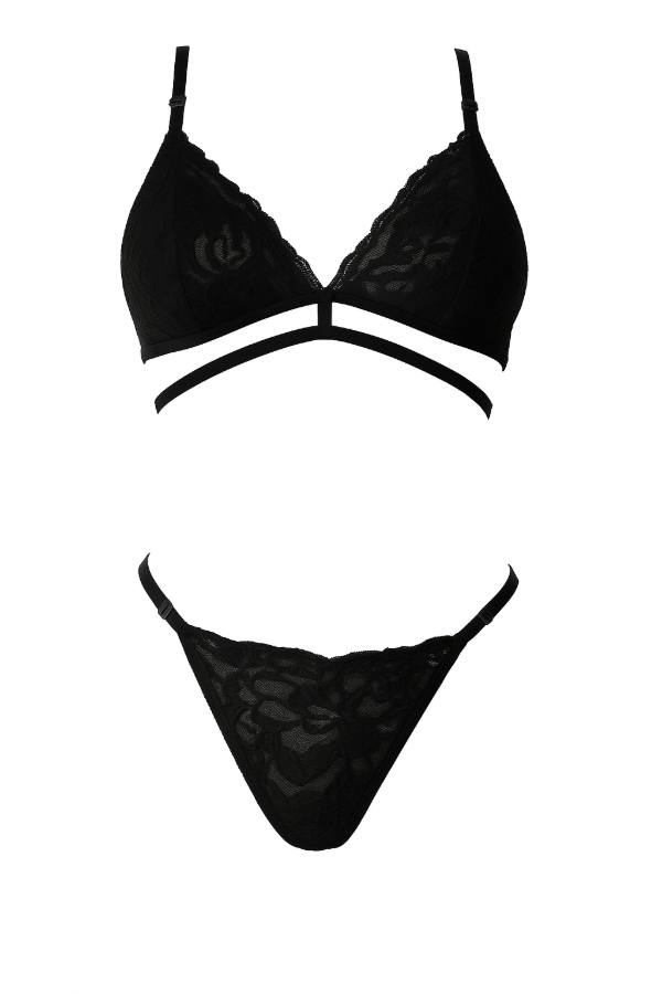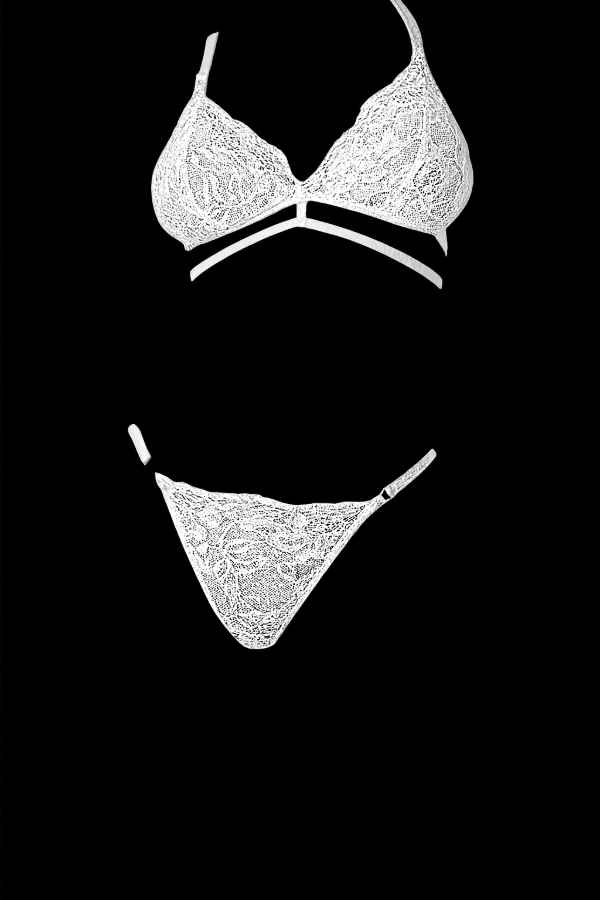 Conjunto tela encaje, sin armar, con detalle de elastico debajo del busto.