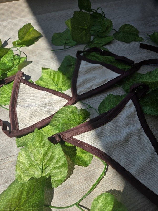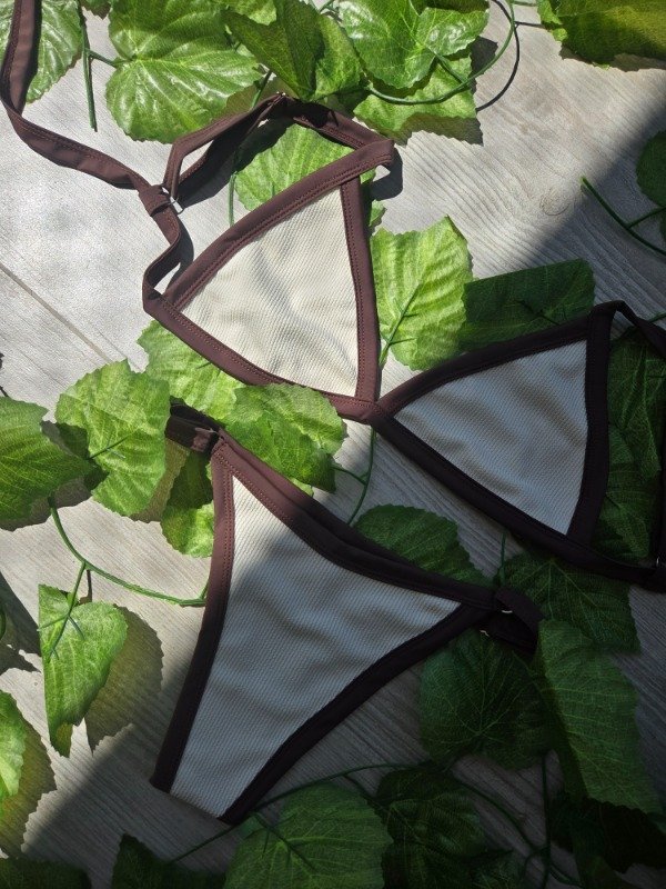Bikini tela morley combinada con lycra, la calidad es excelente. La tela es gruesita. Triangulo SIN ARMAR es forrada, espalda para atar.