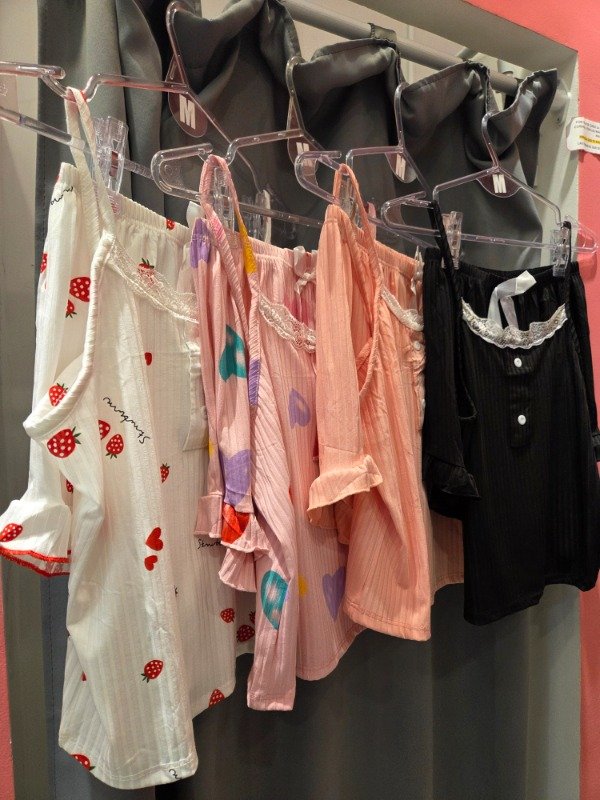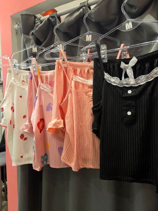 Pijama importado tela morley estampado. Remera mangas cortas. Largo: al ombligo aprox.