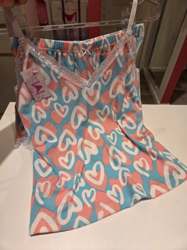 Pijama tela morley excelente calidad. Tiene el detalle de terminación en puntilla, musculosa de tiritas suelta.
