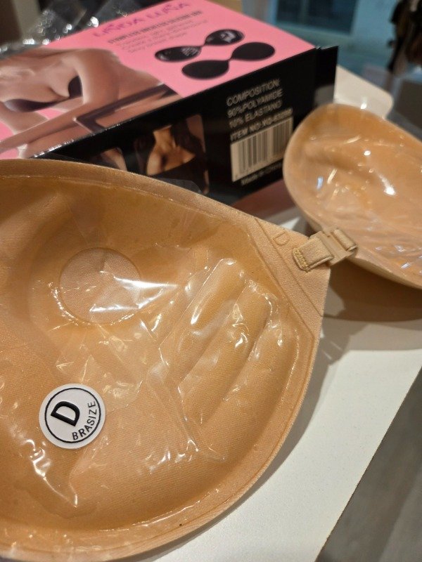 Tazas de tela con adeshivo. Trae push con forma de manito. Hace que junte el busto y marca el escote. ES GENIAL!