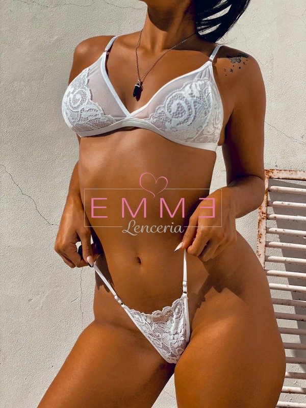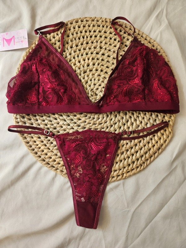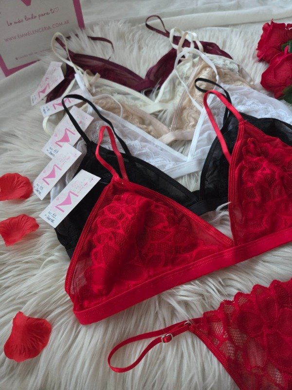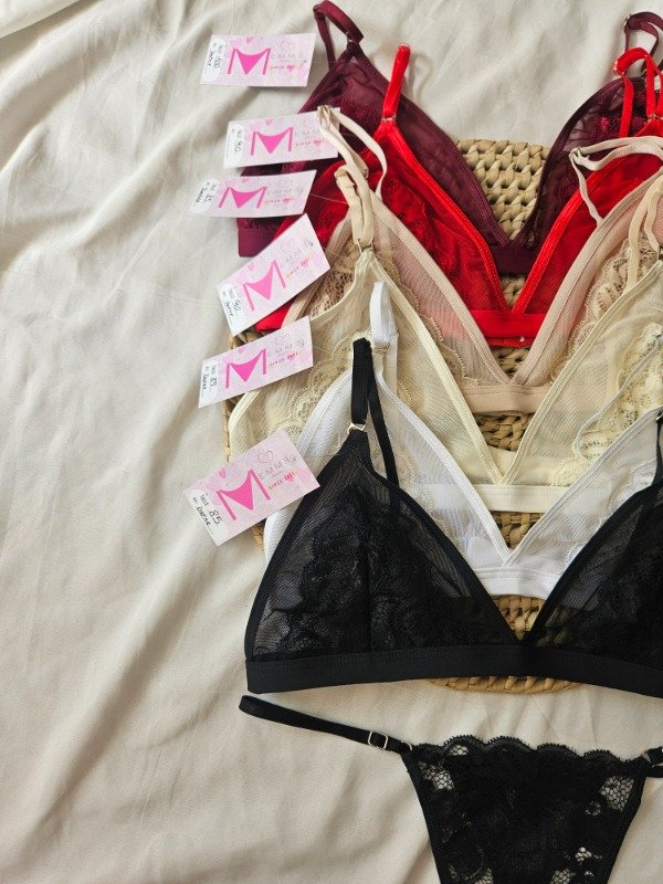 Conjunto en microtul con detalle de encaje por encima del microtul. Tiene el elástico forrado del bajo busto, por ende no marca.