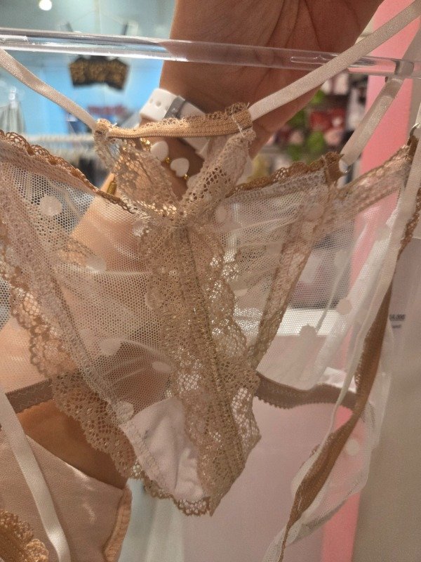 Less regulable tambien de plumeti con detalle encaje, detalle en la parte de la tira tipo hilo.