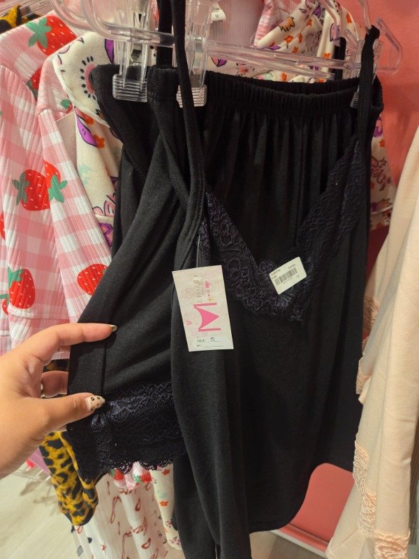 Pijama de algodón excelente calidad. Tiene el detalle de terminación en puntilla, musculosa bretel fino. Short suelto detalle puntilla.